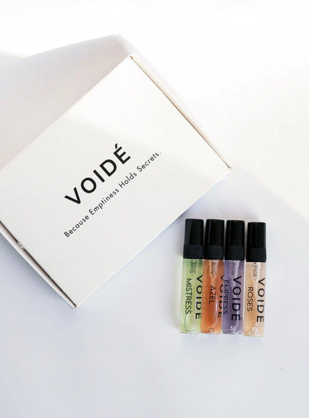 Unveil your next signature fragrance with Voide's Discovery Box. Explore a selection of our most loved scents, designed to let you sample and find the aromas that perfectly resonate with your senses. From invigorating new releases to comforting classics, start your personal scent journey and find your Voide essential today.