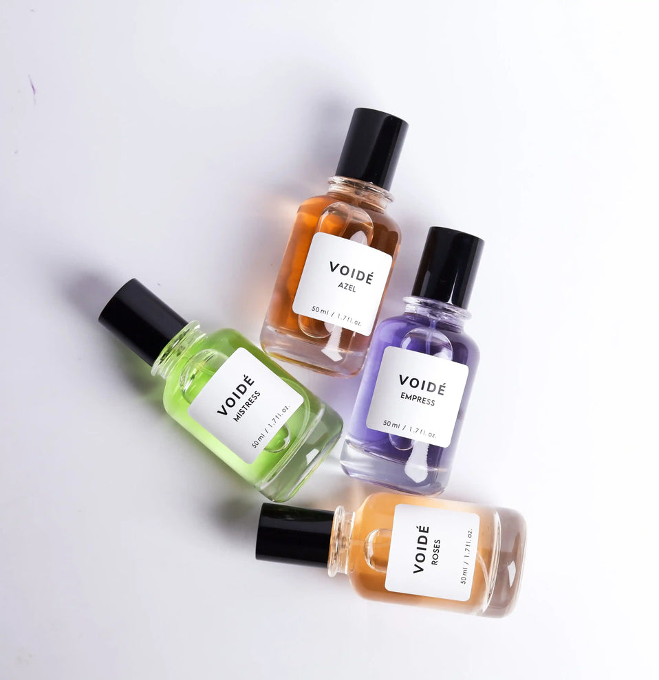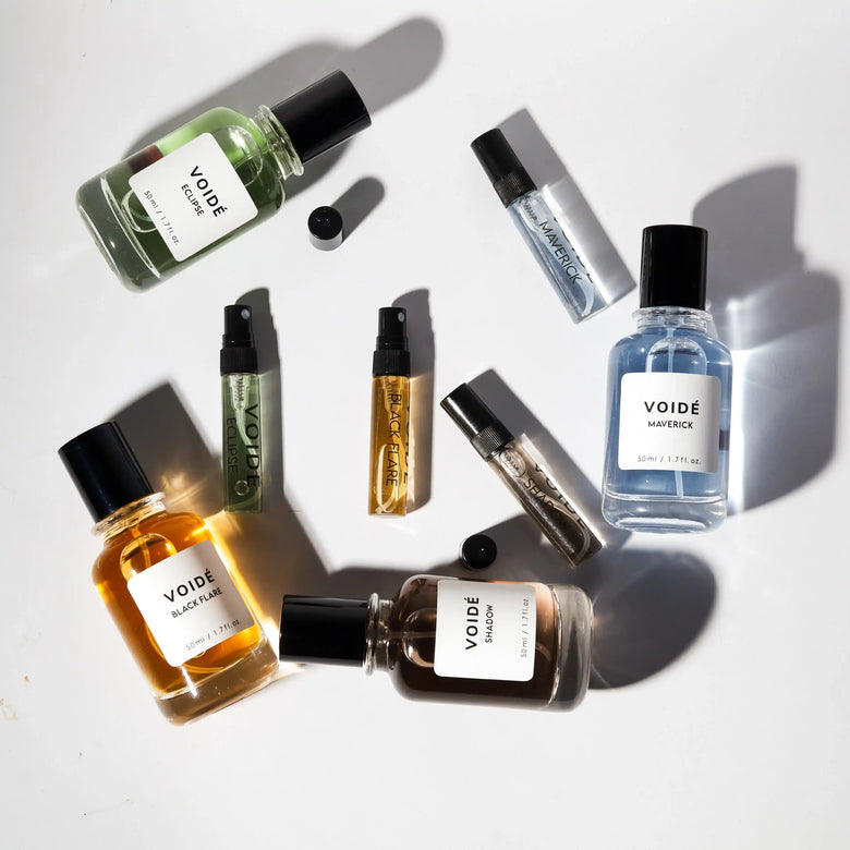 Explore our latest statement in sophisticated self-expression with Voide's signature scent collection. Discover evocative and timeless perfumes that truly elevate your presence and capture the essence of personal confidence. From fresh, invigorating notes to deep, captivating accords, find the signature scent that feels intrinsically you.